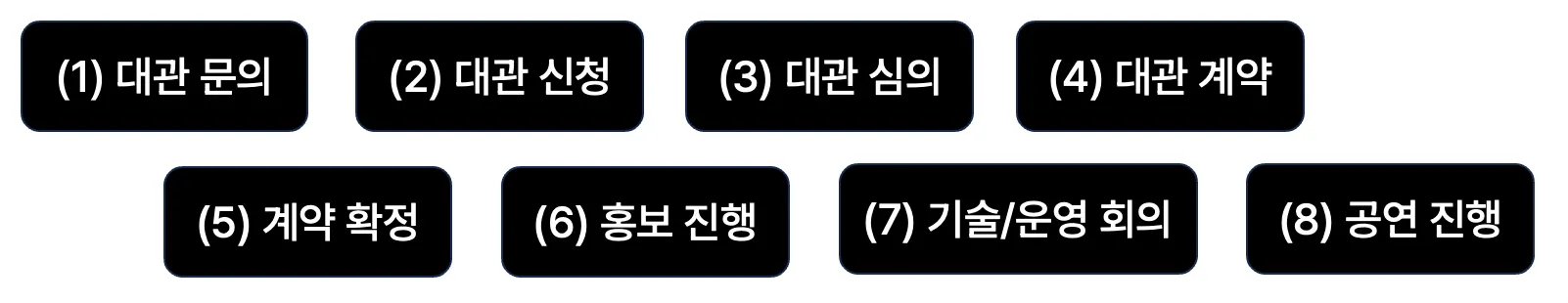 대관 신청이 대관 확정을 의미하지 않으며 대관 신청건에 대해 승인 여부를 검토 후 계약을 진행하게 됩니다.